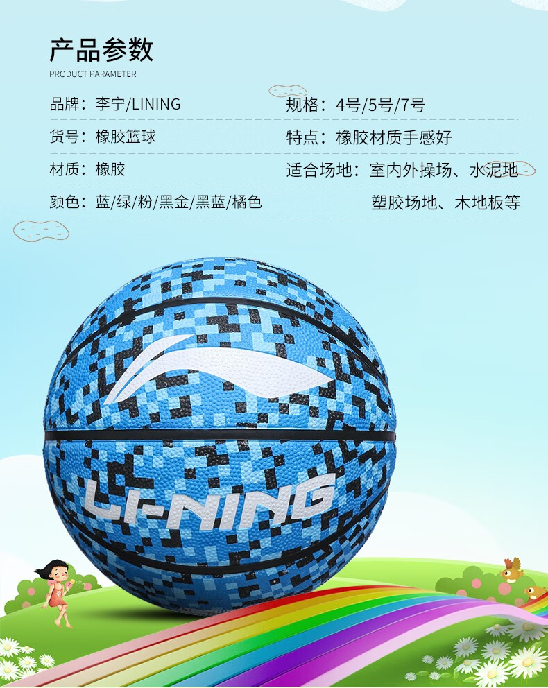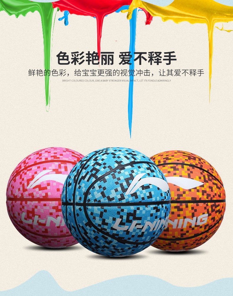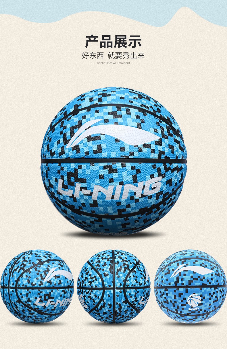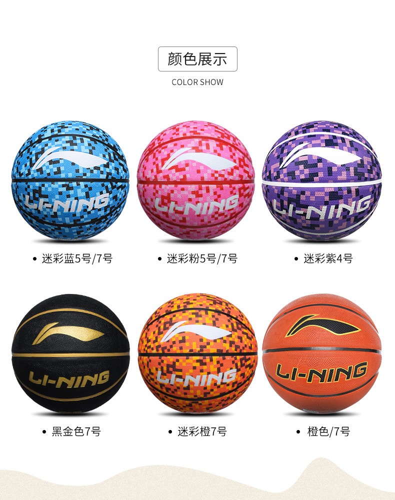 LI-NING篮球室内外通用比赛训练成人青少年儿童小学生幼儿园蓝球 黑金常规7号篮球