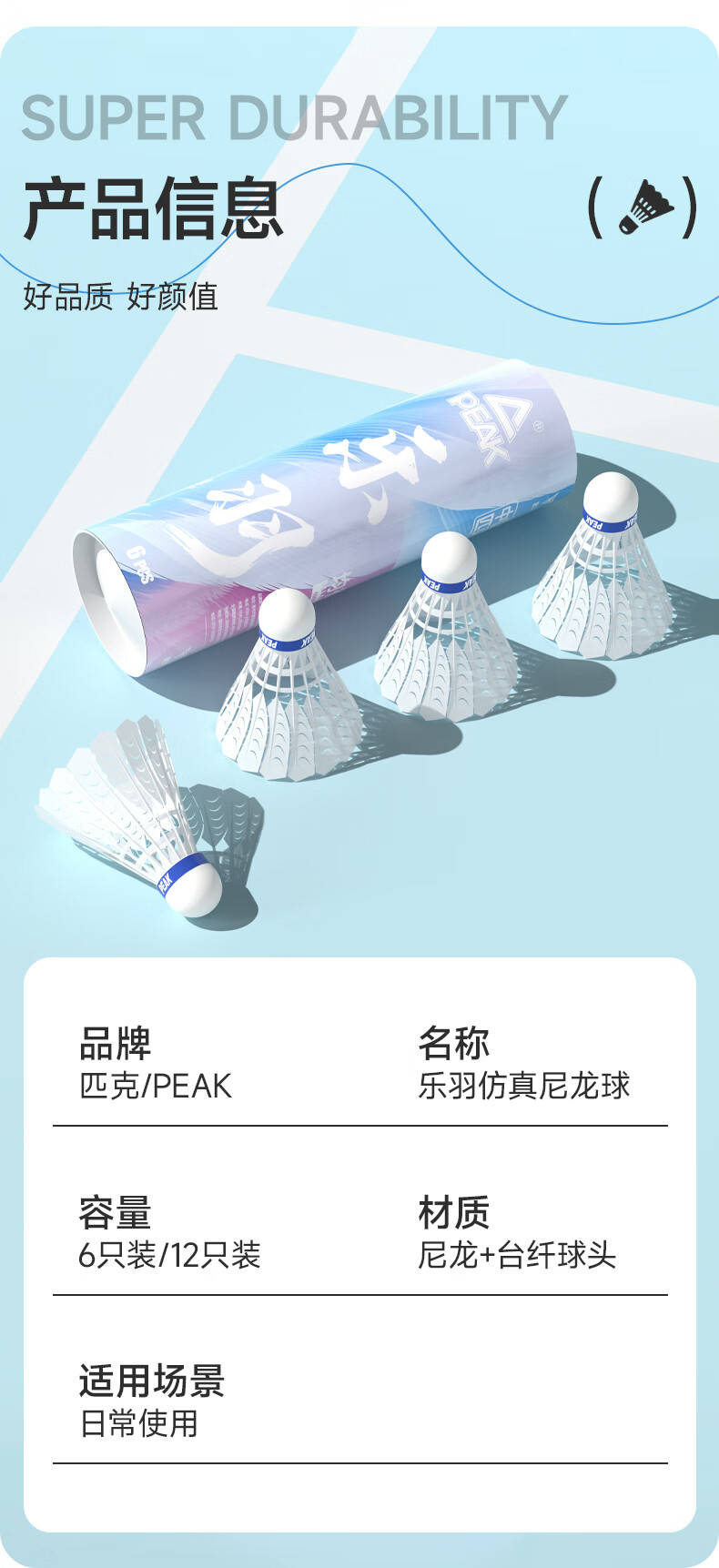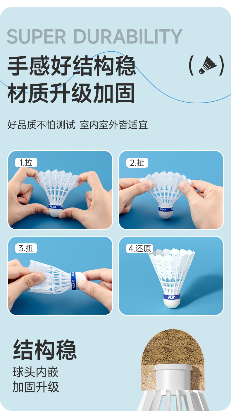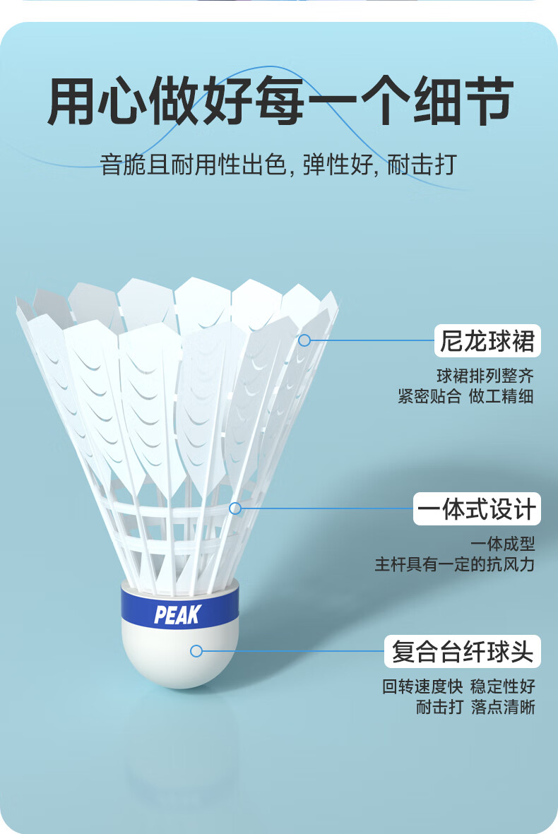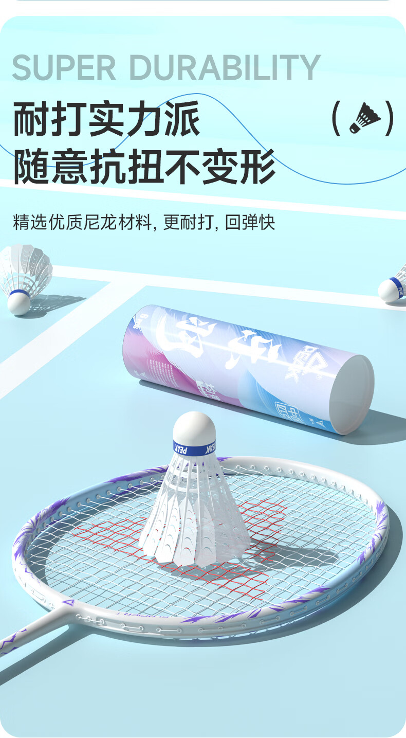 匹克羽毛球仿真羽毛尼龙球耐打不烂12只装防风比赛训练室内外